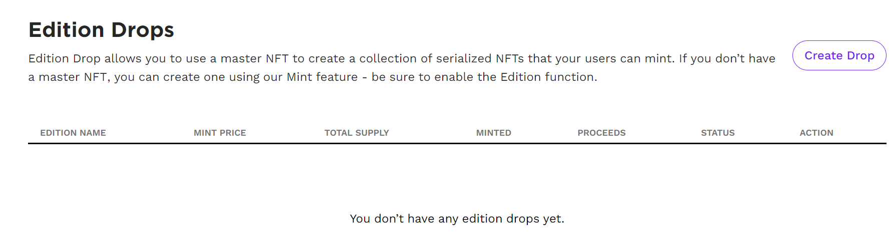 - Click on Edition Drops and navigate to the Create Drop button on the top right hand corner of the screen.