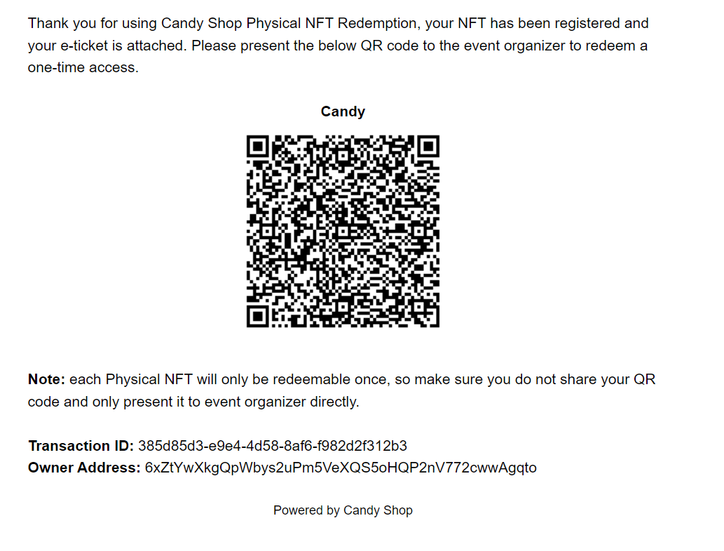 - You should recieve an email of your redemption QR code like the one shown below.