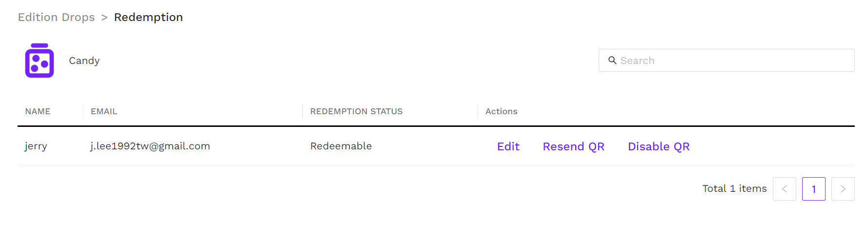 - After item redemption head to the Edition Drops tab and click View User Info to verify the redemption status and related information of your customer.